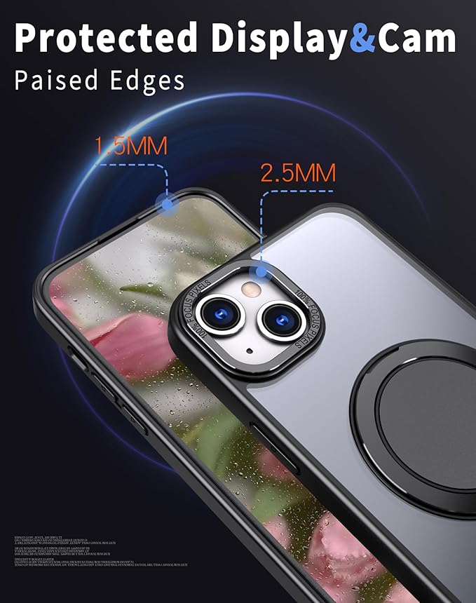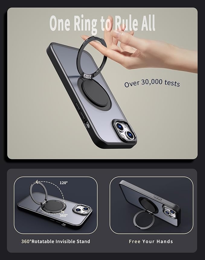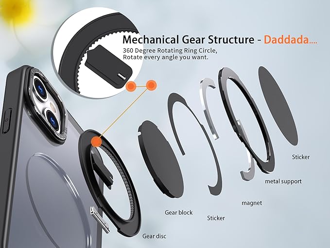 - [Magnetic, Stand, 360° Rotating Ring Multifunctional Phone Case] The stand is made of aviation-grade metal alloy material and can stably support your phone at any angle. Built-in N52 super strong magnet with strong adsorption force, allowing your phone to be firmly attached to objects with magnetic attraction such as magnetic car mounts, This product is Compatible with Magsafe & Wireless Charging.