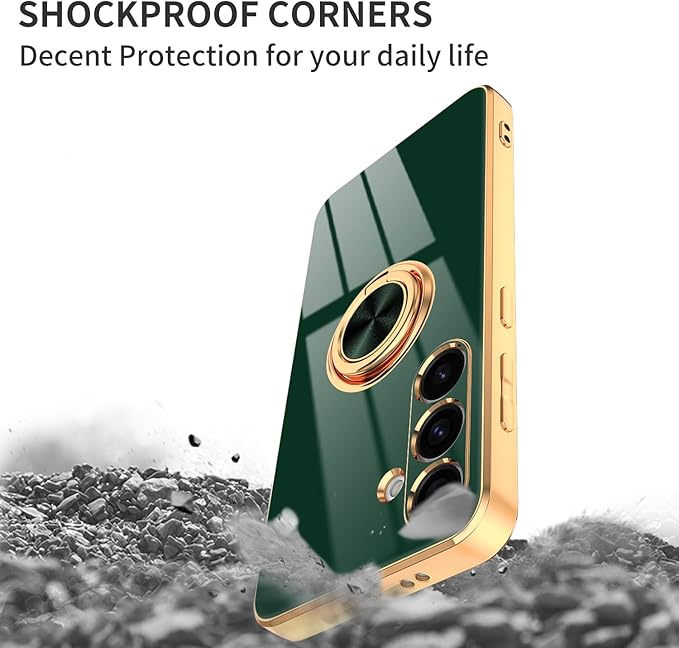 Dinick Green for Samsung Galaxy S24 Case with Ring Holder Kickstand [with Magnetic] Soft TPU Bumper, Glitter Gold Electroplated Cover Slim Thin Protective Phone Case for Galaxy S24