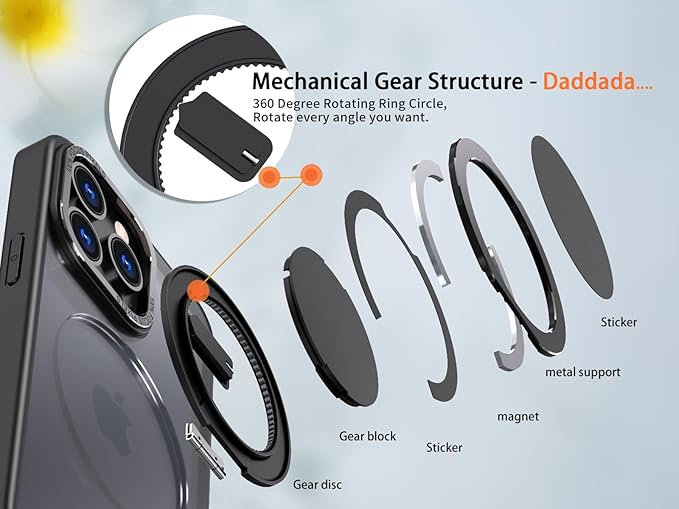 - [Magnetic, Stand, 360° Rotating Ring Multifunctional Phone Case] The stand is made of aviation-grade metal alloy material and can stably support your phone at any angle. Built-in N52 super strong magnet with strong adsorption force, allowing your phone to be firmly attached to objects with magnetic attraction such as magnetic car mounts, This product is Compatible with Magsafe & Wireless Charging.
