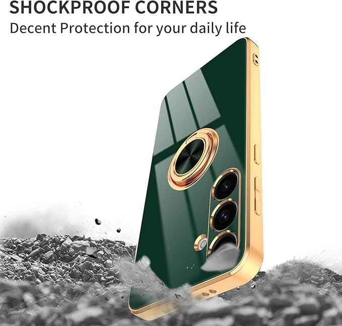Dinick Green for Samsung Galaxy S24+ Case with Ring Holder Kickstand [with Magnetic] Soft TPU Bumper, Glitter Gold Electroplated Cover Slim Thin Protective Phone Case for Galaxy S24 Plus