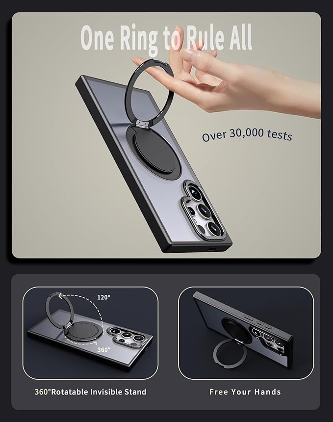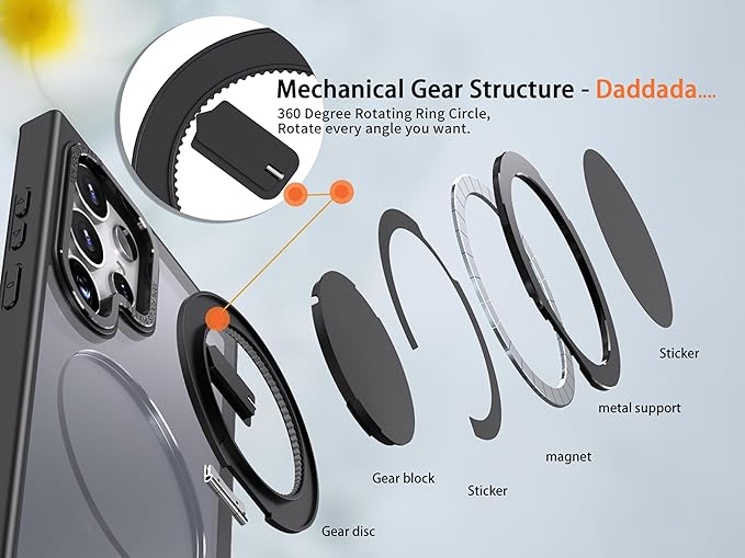 - [Magnetic, Stand, 360° Rotating Ring Multifunctional Phone Case] The stand is made of aviation-grade metal alloy material and can stably support your phone at any angle. Built-in N52 super strong magnet with strong adsorption force, allowing your phone to be firmly attached to objects with magnetic attraction such as magnetic car mounts, This product is Compatible with Magsafe & Wireless Charging.