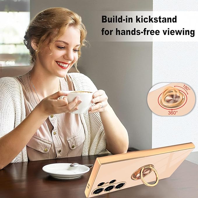 - This Galaxy S24 Ultra phone case comes with a 360° rotation and 160° foldable ring holder, it can keep your phone securely in place while watching movies, videos, and pictures. Support magnetic car mount feature, it is easy to view GPS during driving