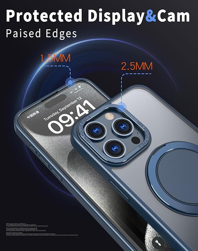 - [Magnetic, Stand, 360° Rotating Ring Multifunctional Phone Case] The stand is made of aviation-grade metal alloy material and can stably support your phone at any angle. Built-in N52 super strong magnet with strong adsorption force, allowing your phone to be firmly attached to objects with magnetic attraction such as magnetic car mounts, This product is Compatible with Magsafe & Wireless Charging.