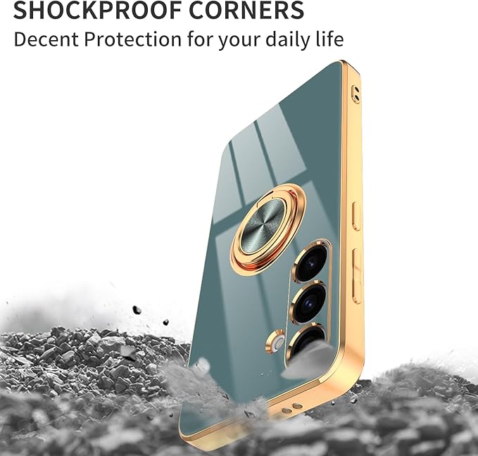 Dinick Gray for Samsung Galaxy S24 Case with Ring Holder Kickstand [with Magnetic] Soft TPU Bumper, Glitter Gold Electroplated Cover Slim Thin Protective Phone Case for Galaxy S24