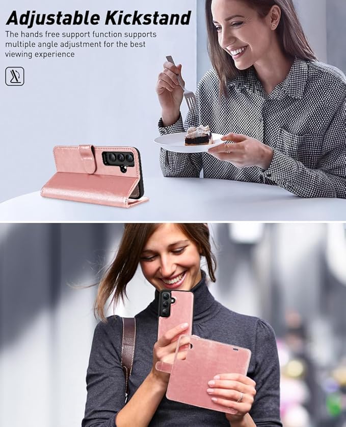 - High-Quality Material: This Galaxy S24 phone wallet case is made from premium PU soft leather with a removable single case. The wallet is incredibly durable and resistant to scratches and fingerprints. It maintains the strength of fibers, and its natural surface texture provides a soothing, luxurious tactile feel. What’s more, the single case with raised edge and extra cushioning offers an all-around shockproof design that protects your device from surface scratches, drops, and dents.