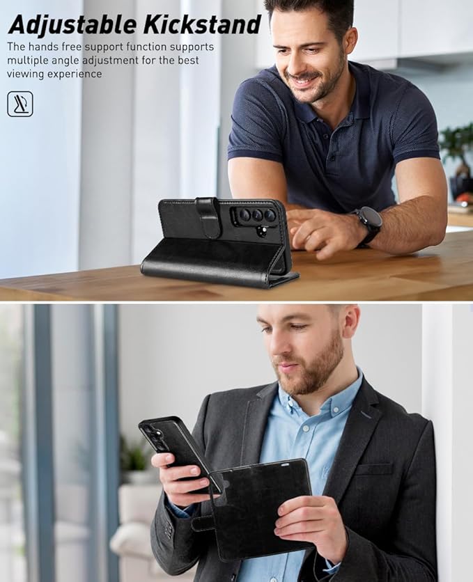 - Multi-Purpose: The wallet part features 3 card slots and a wallet compartment with a magnetic closure, capable of securing 3 cards and some banknotes while closing perfectly. And the case for Galaxy S24 is equipped with RFID shielding technology designed to protect your card information from identity theft with an innovative blocking material. Also, you can use the wallet case as a kickstand to watch videos or movies at the best angles for a comfortable and satisfying visual experience.