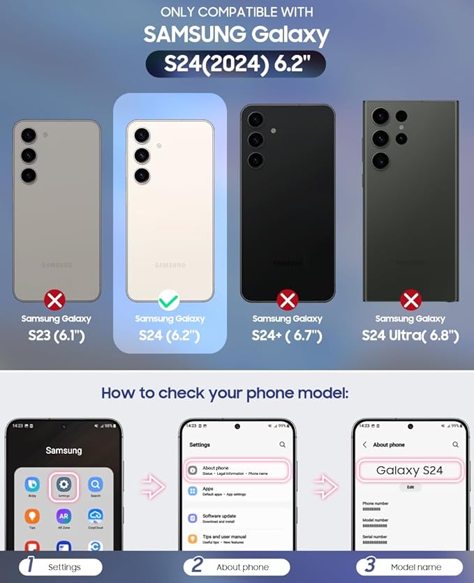 - COMPATIBALITY - The case is ONLY for Samsung Galaxy S24 5G mobiles. Please check your phone on the phone box or on the phone before you purchase this case. If you need another model of wallet case, please click the link [Visit the OCASE Store] below the title. Note: This case may affect the vibration and compass functions due to the magnetically detachable design.