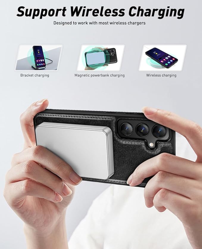 - Upgraded Magnetic Phone Case: This 2-in-1 Galaxy S24 wallet case is both a magnetic inner snap-on inner case and a detachable outer wallet part. The magnetic inner phone case can be used alone as a basic case. It is equipped with upgraded strong built-in magnets, so it not only supports MagSafe and Wireless Charger but is also compatible with a colorful family of accessories for easy attachment to cars, refrigerators, filing cabinets, and other metal surfaces.