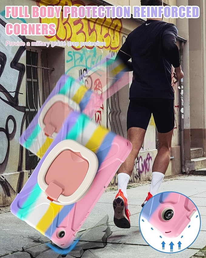 BRAECN Case for Samsung Galaxy Tab A9 Plus/ A9+ 11” 2023 (SM-X210/X216/X218), Heavy Duty Rugged Cover with Screen Protector, 360 Degree Rotating Stand, Stable Kickstand, Shoulder Strap, Colorful Pink