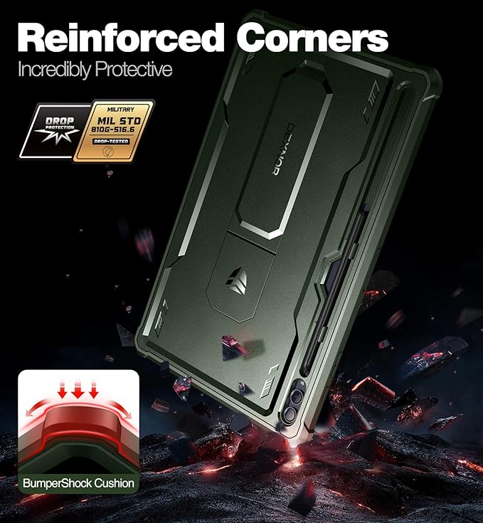 Dexnor Case for Samsung Galaxy Tab S10 Ultra (2024), S9 Ultra(2023), S8 Ultra(2022) 14.6 Inch, [Built in Screen Protector & Kickstand] with Pen Holder Heavy Duty Shockproof Protective Cover - Green