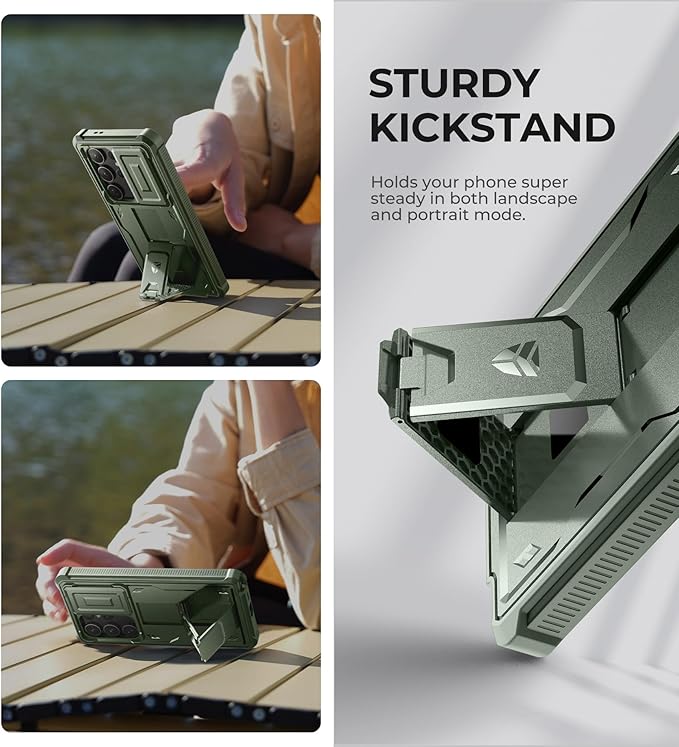Dexnor for Samsung Galaxy S24 Ultra Case with Built-in Slide Camera Cover & Screen Protector & Kickstand,Shockproof Rugged Case Full-Body Bumper Protective Cover for Galaxy S24 Ultra (2024),Army Green