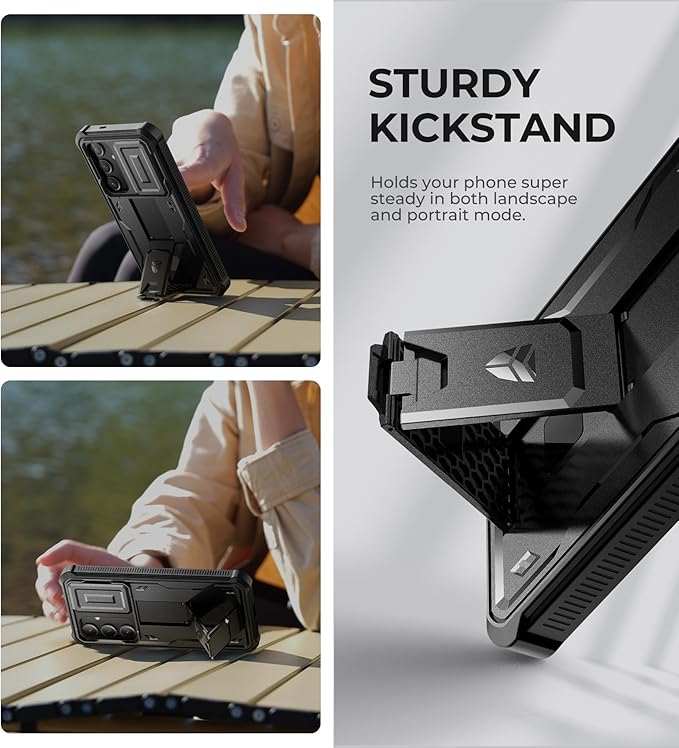 - 【A kickstand, also a ring holder】Prop up the kickstand and enjoy your TikTok time in portrait mode or binge-watch your favorite shows in landscape mode. If you're worried about your phone slipping while snapping pics outdoors, just slide one of your fingers through the stand for a secure one-handed grip.
