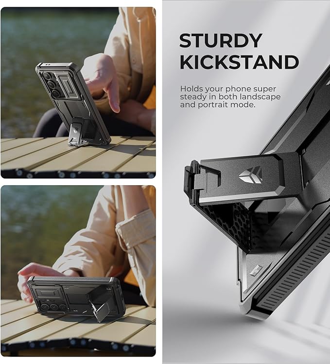 Dexnor for Samsung Galaxy S24 Ultra Case with Built-in Slide Camera Cover & Screen Protector & Kickstand, Shockproof Rugged Case Full-Body Bumper Protective Cover for Galaxy S24 Ultra (2024),Black
