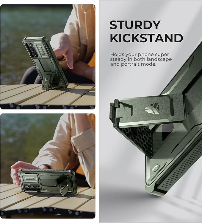 Dexnor for Samsung Galaxy S24 Plus Case with Built-in Slide Camera Cover & Screen Protector & Kickstand, Shockproof Rugged Case Full-Body Bumper Protective Cover for Galaxy S24 Plus (2024),Army Green