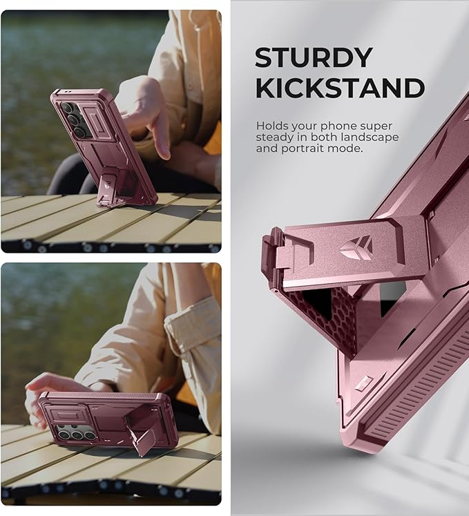 Dexnor for Samsung Galaxy S24 Ultra Case with Built-in Slide Camera Cover & Screen Protector & Kickstand,Shockproof Rugged Case Full-Body Bumper Protective Cover for Galaxy S24 Ultra (2024),Maroon Red
