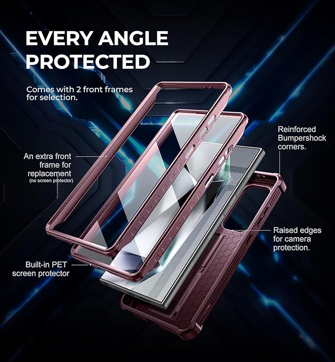 - 【Designed for Samsung Galaxy S24 Ultra only】This rugged case comes with precise cutouts for easy access to every port, button, and other functions, and it supports wireless charging and wireless PowerShare. To avoid any compatibility issues, please check your phone model carefully before making the purchase.