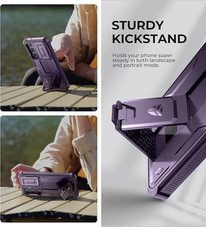 Dexnor for Samsung Galaxy S24 Plus Case with Built-in Slide Camera Cover & Screen Protector & Kickstand, Shockproof Rugged Case Full-Body Bumper Protective Cover for Galaxy S24 Plus (2024),Purple