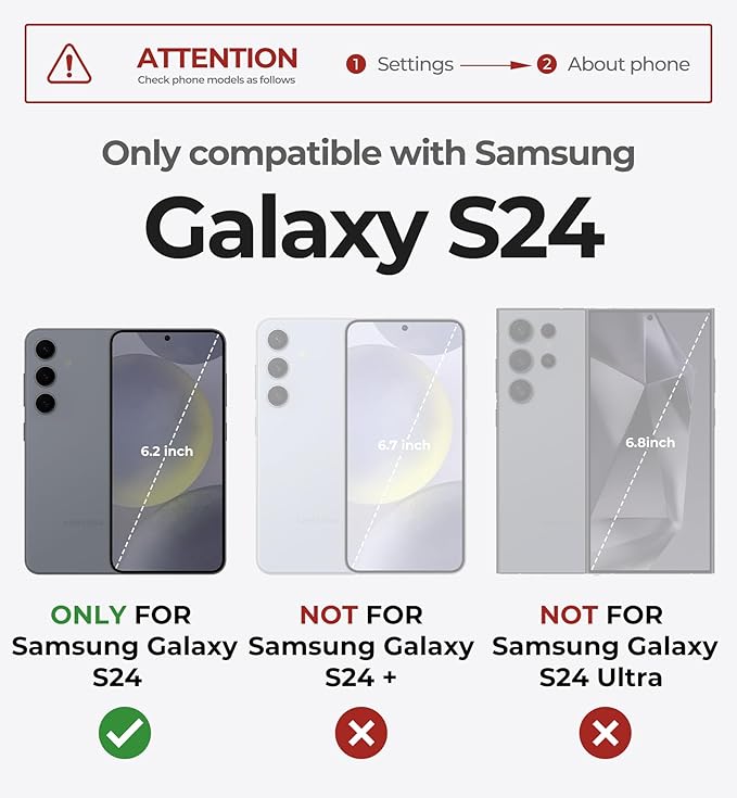 - 【Designed for Samsung Galaxy S24 only】This rugged case comes with precise cutouts for easy access to every port, button, and other functions, and it supports wireless charging and wireless PowerShare. To avoid any compatibility issues, please check your phone model carefully before making the purchase.
