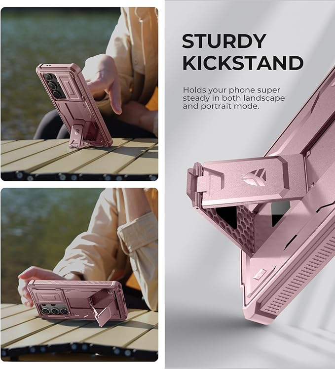 Dexnor for Samsung Galaxy S24 Ultra Case with Built-in Slide Camera Cover & Screen Protector & Kickstand,Shockproof Rugged Case Full-Body Bumper Protective Cover for Galaxy S24 Ultra (2024),Peony Pink