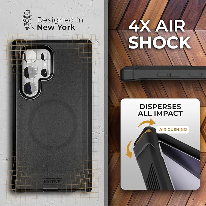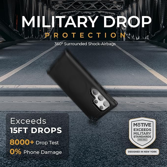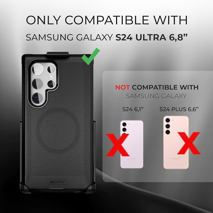 MOTIVE Designed for Samsung Galaxy s24 Ultra Case with Belt Clip, Compatible with MagSafe, Quad-Layer 15FT Military Grade Drop Protection, Heavy Duty s24 Ultra Holster Case 6.8” | Black