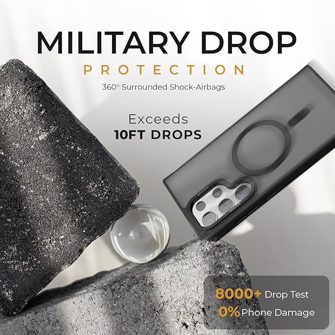 - 👀 [SHOCKPROOF CASE FOR S24 ULTRA CASE WITH BELT CLIP]: Our Frosted Clear Series s24 ultra belt clip blows past military standards thanks to layers of protection, including an exterior frame, hard PC backplate scratch resistant and TPU/Steel Buttons. Galaxy s24 ultra case with belt clip Air-Pocket Technology around the entire perimeter and back of the case provides cutting edge impact absorption. s24 ultra holster case Drop tested nearly 50 times from at least 10ft