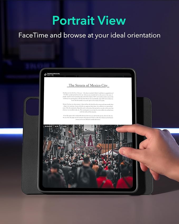 - Raised Screen View: enjoy a raised view of your iPad Pro closer to your natural eye line and sit upright in a more comfortable position during long periods of use