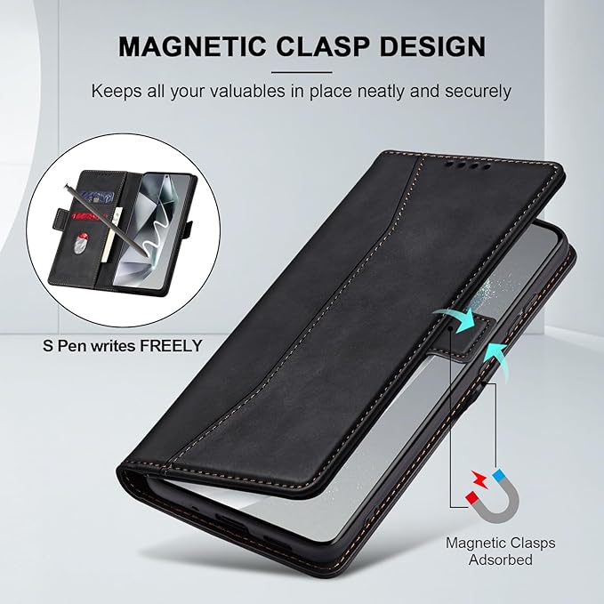 - 【Compatibility】:Designed for Samsung Galaxy S24 Ultra.The Leather wallet case precise cutouts for easy access to all ports, buttons, sensors and cameras. Soft buttons with good response, are easy to press.Please check your phone model that is correct before placing an order.
