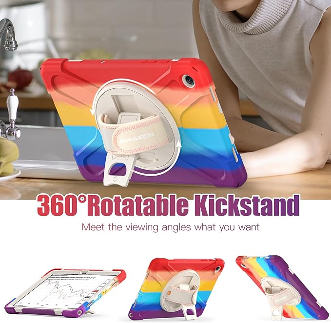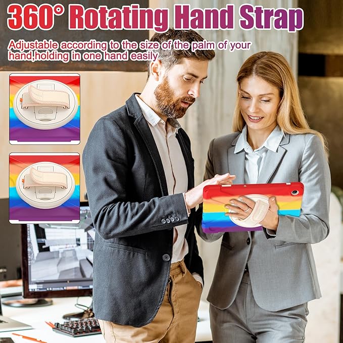 - 360° Rotating Hand Strap & Stand: The Protective Samsung Galaxy Tab A9+ Plus Case built-in 360° Rotatable Hand Strap & Kickstand on the back, flexible in Vertical & Horizontal any other angles ideal for watching video, reading or teaching, maximinzely free your hand. Adjustable Hand Strap perfectly suitable uses for all size of hands, adults, students, child