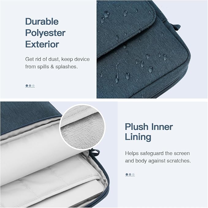 - [High-end Material] – Made of premium polyester exterior, features a water-resistant exterior and gets rid of dust and keeps your device from spills and splashes. Soft and thickened lining helps safeguard the screen and body against scratches.
