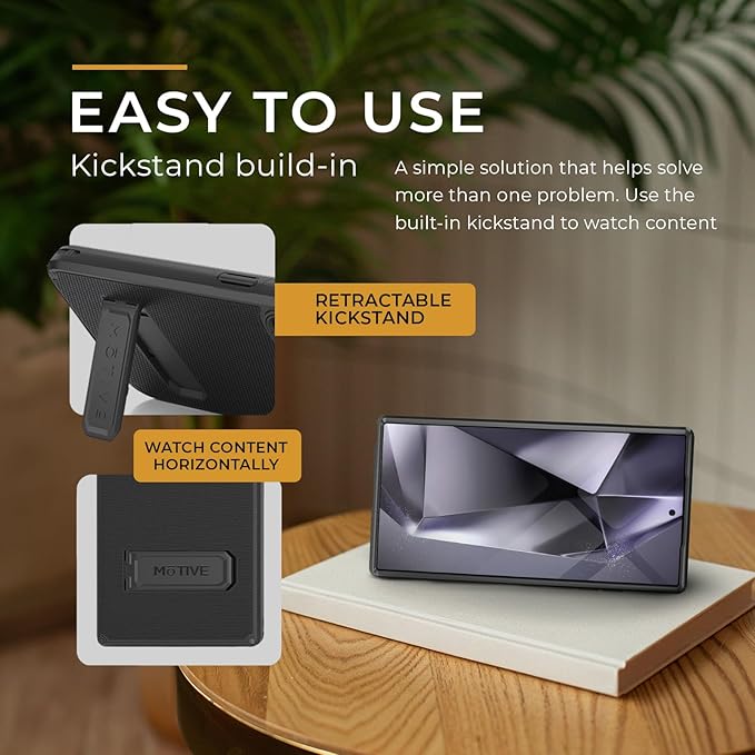 - ✅ Awesome Kickstand for Samsung Galaxy S24 Ultra Holster: Watch videos, study, exercise, or FaceTime with friends completely hands-free using your s24 ultra case with clip. This galaxy s24 ultra holster provide a 360° rotatable Belt Clip, featuring non-slip groove edges, tactile easy-press TPU buttons, integrated port covers and a reinforced holster.