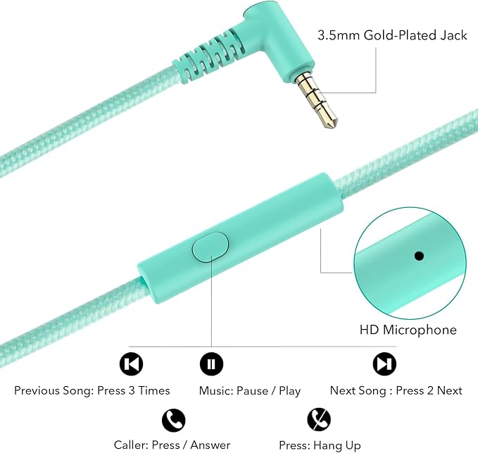 - RORSOU R10 headphones with microphone in bright colors are built meticulously with strong and sturdy plastic for long-lasting resilience and durability. Premium 4.9 ft (1.5m) nylon braiding cord doesn’t tangle or kink, suitable for adults and Children. Lightweight and foldable design make these wired headphones easy to put into your package and take along anywhere.