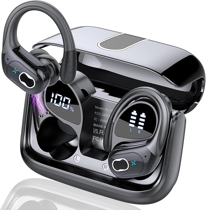 - 75 Hours Playtime and Dual LED Display: Running headphones provides up to 15 hours continuous using time on a single charge, portable charging case can charge the earbuds for 5-6 times, giving 75 hours of a total playtime. Whether on the road or in daily life, it will provide unparalleled convenience and smart experience. The dual LED display on earphones accurately display the remaining power of charging case and the charging progress of Wireless ear buds.