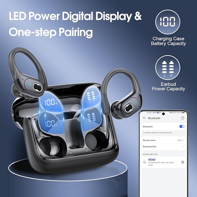 - Leading Bluetooth 5.4 Technology and Easy Pairing: Features with the advanced Bluetooth 5.4 chip technology, Aptkdoe HD65 wireless headphones support HFP A2DP HSP AVRCP, which provides instant pairing and stable transmission without interruptions, with a stable connection distance of up to 33ft. The moment you open the case, the earbuds instantly and effortlessly pair with your previously connected device, sparing you from the hassle of manual pairing and long connection times.