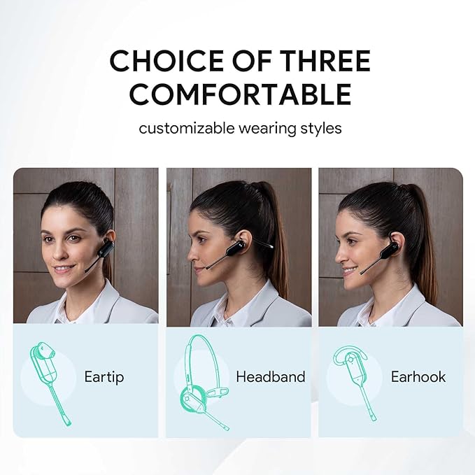- Comfortable 3 Wearing Styles & 24 Months Warranty Warranty: The wh63 convertible headset lightweight and comes in three different wearing styles – earpiece, ear hook, and headband, so you won’t feel any discomfort, even after wearing it for hours at a stretch. Our device comes with a 2-year warranty, which is a testimony to its quality.