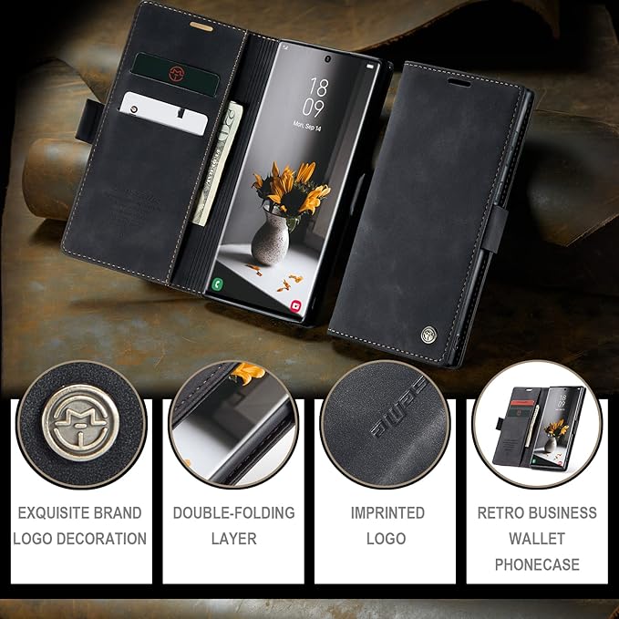 for Samsung Galaxy S22 Ultra Case, Flip Wallet Leather Case with Card Holder Magnetic Closure Shockproof Kickstand Protective Phone Cases Cover for Galaxy S22 Ultra,Black