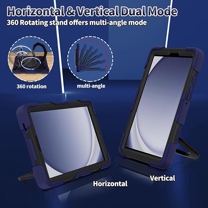 - [Multiple angles of kickstand/Magic Kickstand & Handle] Upgrade 360 rotating and foldable kickstand provides angle between 20-75 degrees of horizontal (landscape) or vertical (portrait) orientation for your 11 inch Galaxy Tab A9 tablet. Also offers hand hold and hung on wall using by handle function, allow you use or carry much easier, match up all kinds of group