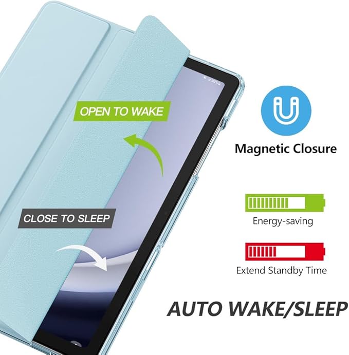 - Auto Wake/Sleep: Built-in magnetic strip, automatically wakes or puts your tablet to sleep when the lid is opened and closed. this Tab A9 Plus Case Protects and extends battery life