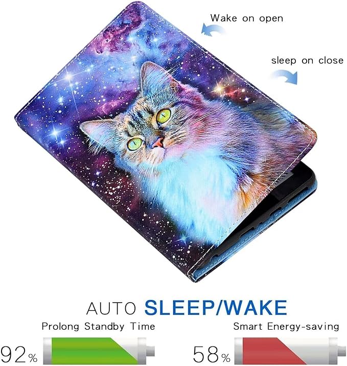 KEROM Case for Samsung Galaxy Tab A9+ Plus 11 Inch 2024 2023 (SM-X210/X216/X218), Slim PU Leather Stand Case Protective Cover for Galaxy Tab A9+/A9 Plus Tablet, Auto Wake/Sleep - Space Cat
