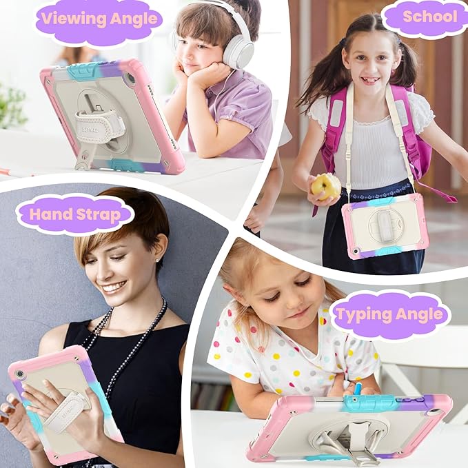 - 【Rotating Hand Strap / Stand】 Provide the securest protection and more convenience when you play or work with Galaxy Tab A9 Plus. Its 360° Rotating Kickstand, can provides 30°-45°-60° viewing/drawing/video/typing angles. With soft handle strap, easier to use your tablet at home or outdoor working, studying, gaming for kids &adults