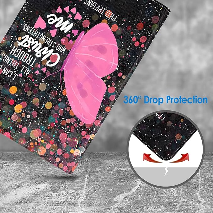 Case for Samsung Galaxy Tab S10 Lite / S10 FE / S9 FE 10.9-Inch / S9 11-Inch, Slim Lightweight PU Leather Stand Cover with Auto Wake/Sleep, Butterfly Quote Bible Verse Philippians 4:13