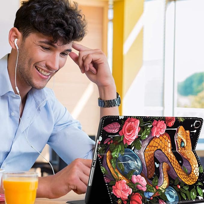 Case for Samsung Galaxy Tab A9 Plus 11 inch 2023,Slim Fit Foldable Standing Cover Case with Auto Sleep/Wake for Galaxy Tab A9+ 11’2023 (SM-X210/X216/X218),Golden Snake and Flower