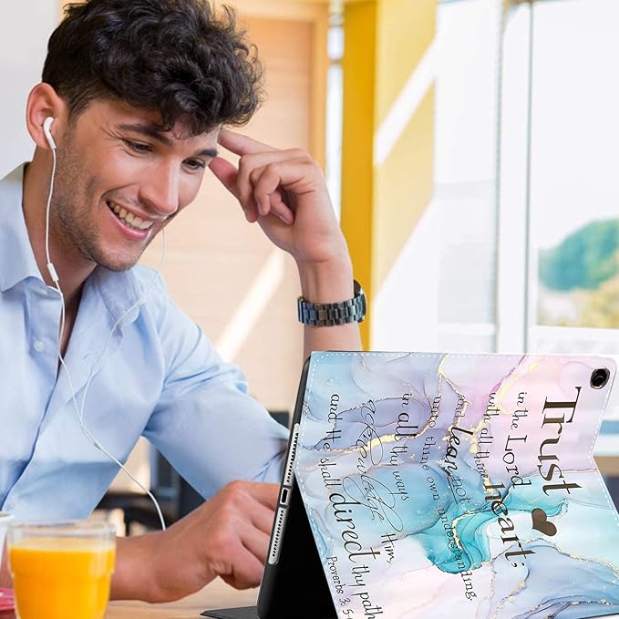Case for Samsung Galaxy Tab A9 Plus 11 inch 2023,Slim Fit Foldable Standing Cover Case with Auto Sleep/Wake,Verse Scripture Quotes on Teal Purple Marble