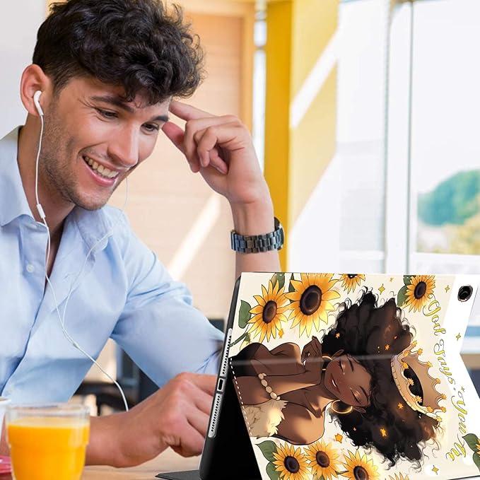 Case for Samsung Galaxy Tab A9 Plus 11 inch 2023,Slim Fit Foldable Standing Cover Case with Auto Sleep/Wake for Galaxy Tab A9+ 11’2023 (SM-X210/X216/X218),African American Girl Sunflower