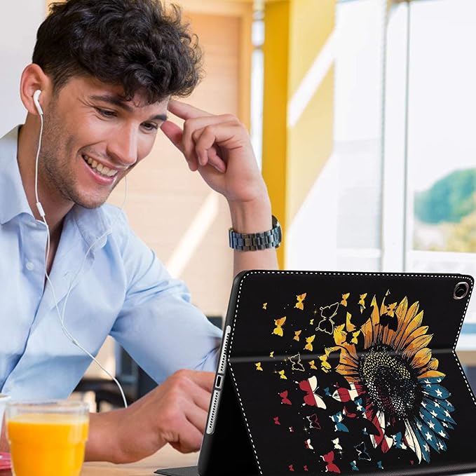 Case for Samsung Galaxy Tab A9 Plus 11 inch 2023,Slim Fit Foldable Standing Cover Case with Auto Sleep/Wake for Galaxy Tab A9+ 11’2023 (SM-X210/X216/X218),USA Flag Sunflower Butterfly