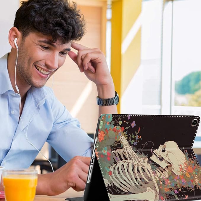 Case for Samsung Galaxy Tab A9 Plus 11 inch 2023,Slim Fit Foldable Standing Cover Case with Auto Sleep/Wake for Galaxy Tab A9+ 11’2023 (SM-X210/X216/X218),Skeleton with Flower Skull