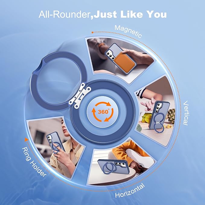 Compatible with Samsung Galaxy S24 Plus Case with 360Rotatable Magnetic Ring Stand Compatible with Mag-Safe Military Protection Matte Translucent Phone Case for Galaxy S24+,Blue