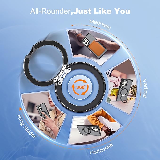 Compatible with Samsung Galaxy S22 & S23 Ultra Case with 360Rotatable Magnetic Ring Stand Compatible with Mag-Safe Military Protection Shockproof Translucent Phone Case,Black