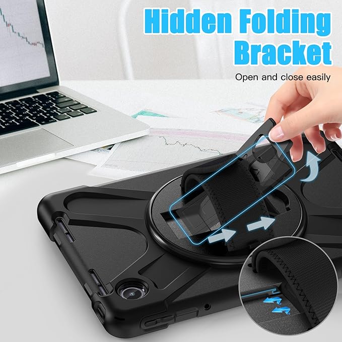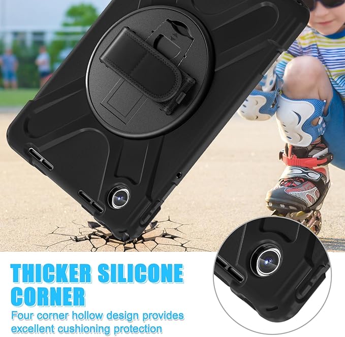 TSQQST Case for Lenovo Tab M11 (TB330FU/TB330XU) with Rotating Stand+Hand Strap | Military Grade Heavy Duty Rugged Protective Case for Tab K11 LTE 2024/ Lenovo Xiaoxin Pad 2024 (TB331FC) | Black