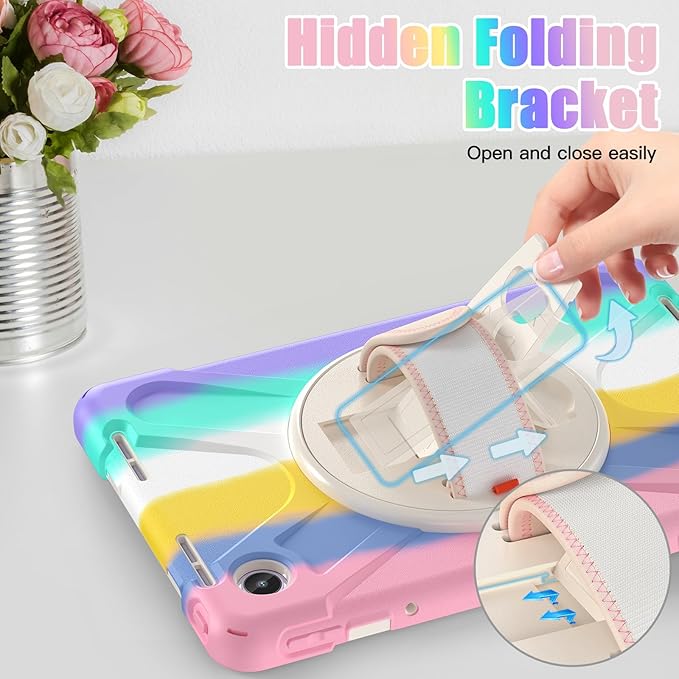 TSQQST Case for Lenovo Tab M11/ K11 LTE 2024 TB-330FU/TB330XU for Kids Girls, Full Body Drop Proof Case for Lenovo Xiaoxin Pad 2024 (TB331FC), 360° Rotate Stand &Hand Strap | Colorful Pink