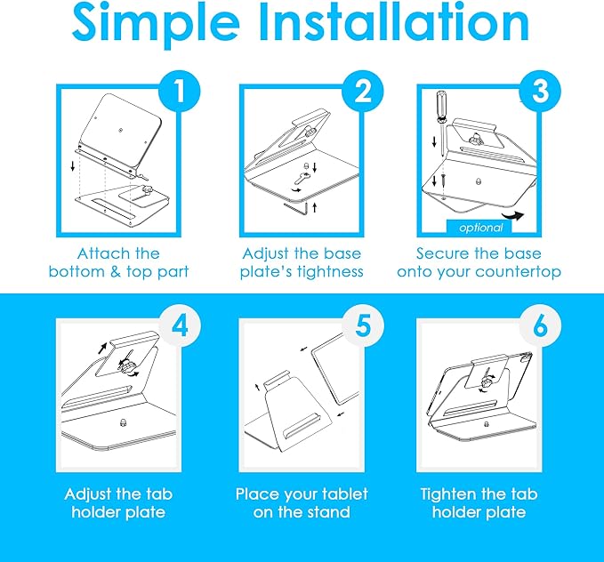 - Pre-Drilled Mounting: Featuring pre-drilled mounting holes, this compatible iPad stand ensures easy installation on any surface. A must-have for businesses aiming to integrate tablets into their office accessories seamlessly. It can be used into a shop as square stand for ipad.